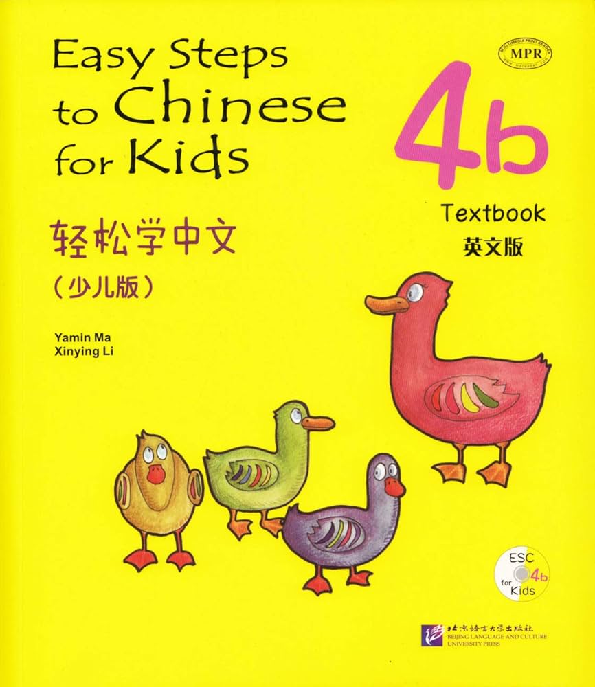 این کتاب درسی 4b از این مجموعه است که به زیبایی تصویرسازی شده و تمامرنگی چاپ شده است. این کتاب در مجموع 7 درس دارد که موضوعاتی مانند آب و هوا، لباس، اعمال/رفتارهای در حال انجام، امکانات مدرسه، دروس مدرسه و ورزش و غیره را شامل میشود. به عنوان آخرین جلد از مجموعه ESC برای کودکان، این کتاب یک مرور کلی بر پینیین، کاراکترهای ساده و رادیکالهای آموخته شده قبلی ارائه میدهد. علاوه بر این، در هر درس سه رادیکال جدید آموزش داده میشود، تمرینات بیشتری برای نوشتن کاراکتر و رادیکال، جملهسازی و ترکیب متن ارائه شده است و یک تمرین شنیداری خاص در هر درس اضافه شده تا مهارتهای جامع زبان چینی دانشآموزان را بیشتر بهبود بخشد.